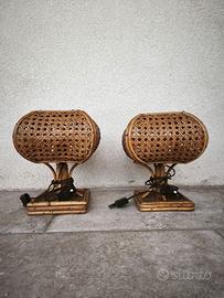 Coppia di abat-jour in bambù e paglia di vienna vintage e funzionanti. 20x20 circa. Zona Centocelle.