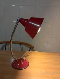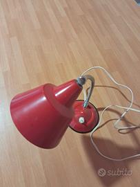 Abat- jour vintage rosso con asta in metallo pieghevole, funzionante, altezza circa cm 29. Piccole macchie dovute all'età