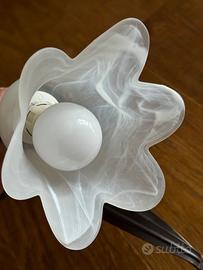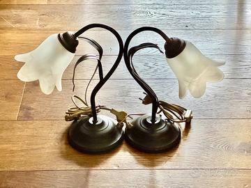 Due abat-jour in buone condizioni con campana in vetro satinato bianco, concavo color oro, interruttore e spina italiana.