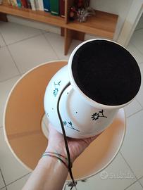 Abatjour elegante da soggiorno con base in ceramica. La lampada é finemente decorata a mano con fiori e linee. Colori panna e verde scuro.