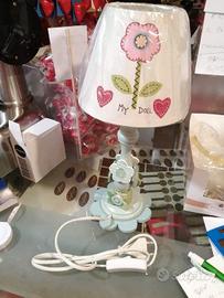 Vendo abatjour nuovo My Doll, in legno con la base decorata e il paralume molto bello e originale.