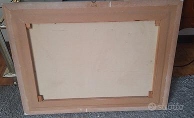 Il dipinto è protetto da un vetro e montato in una cornice bianca.