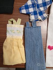 vendo questi abitini da Barbie fatti a mano dalla nonna molto belli e originali.Compreso un paio di scarpette.
