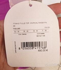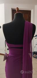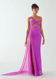 Abito Titanio Atelier Emè,in tulle elasticizzato,Tg.XS,color fucsia.Profondo spacco drappeggiato,e drappo che nasce dal centro seno che eventualmente, può essere utilizzato come stola.