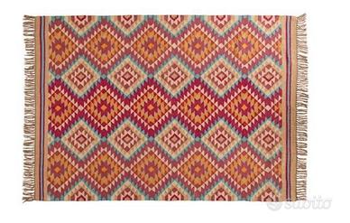 Acapulco: tappeto intrecciato in stile kilim multicolore in lana (30%) e juta (70%). Dimensioni cm 160 x 230. Ottime condizioni. Le pieghe vengono via con una semplice stiratura a vapore. In catalogo su La Maisons du Monde a 269 euro.