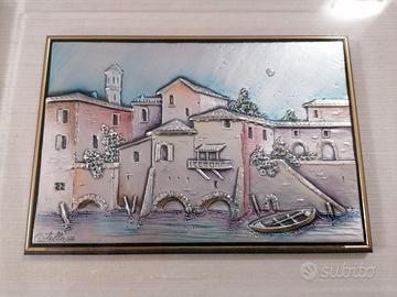 NUMERO LIMITATO ARTISTA: Castellani BASSORILIEVO REALIZZATO ARTIGIANALMENTE LAVORAZIONE CON DISEGNO ORIGINALE DELL’ARTISTA FINITURA DI ESPERTI INCISORI E CESELLATORI LASTRA D’ARGENTO 925‰ OPERA REALIZZATA IN PREZIOSE E DELICATE VELATURE CHE IL COLORE NE ESALTA LA SUA VIVEZZA CORNICE IN RADICA LUCIDO, CON ALLESTERNO E AL CENTRO, UNA DECORAZIONE ARGENTATA. MISURE: H 32 X L 37 X P 3 cm. MADE IN ITALY