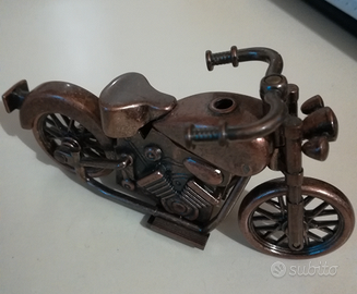 Accendino da tavolo moto in ottone con ruote e sterzo che girano.