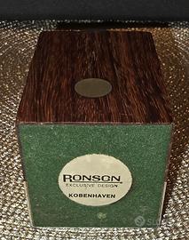 Elegante accendino da tavolo Ronson, un pezzo di design che unisce legno e metallo.
