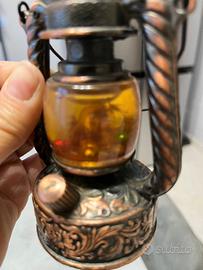 Vendo accendino a forma di lanterna, pezzo da collezione. L’oggetto non è funzionante, ma può essere riparato, ideale per collezionisti, esposizione o come oggetto decorativo vintage. Condizioni: usato, non funzionante Materiale: metallo Ottimo come pezzo da vetrina Ritiro a mano o spedizione a carico dell’acquirente. Prezzo trattabile.