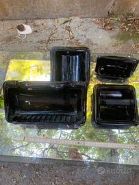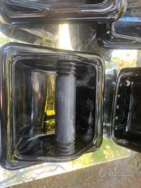 Accessori bagno anni 50, molto belli e particolari nonche introvabili. Il lotto comprende maniglione portaoggetti vasca/doccia, porta carta igienica, porta sapone e porta oggetti. Sono impolverati ma molto belli e partcolari. Prezzo lievemente trattabili. Preferibile ritiro su Roma