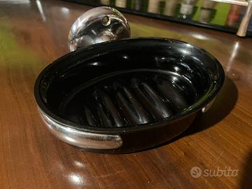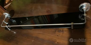 Mensola e porta sapone anni 50 Struttura in acciaio con viti originali e ceramica smaltata nera Buone condizioni - presente patina del tempo