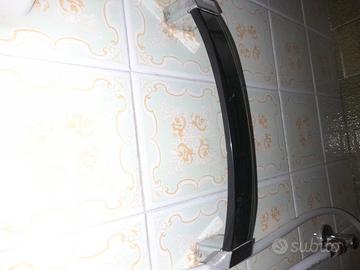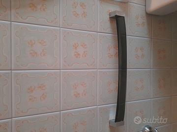 Vendo accessori bagno anni 70 in vetro composti da specchio rotondo con cornice (diametro specchio 60cm con cornice 70cm) piccola plafoniera a due lampade porta-asciugamani grande di 48cm e piccolo di 30cm. Cedo anche separatamente. Movimentazione e trasporto a carico acquirente. Scusate per le foto. Firenze zona Statuto.