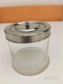 Contenitori batuffoli con coperchio in metallo e bottiglia da farmacia con tappo in vetro. Articoli nuovi, mai usati. Vendo i tre articoli per la somma di 40 Euro in contanti.