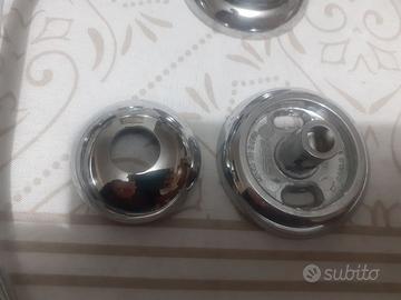 Vendo, causa trasferimento, kit accessori bagno, in acciaio lucido, robusto e di qualità, marca Gedy, composto da 5 pezzi: 2 porta asciugamani, 2 ganci e 1 ripiano, in vetro/ferro, con finiture cromate. In ottime condizioni. Pezzi non vendibili separatamente.