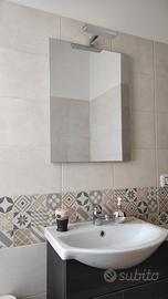 Vendo accessori bagno, mobile, specchio, lampada, lavabo, tazza, bidet, rubinetti, porta asciugamani, cabina doccia (87-91 cm altezza 185 cm) tutto come nuovo.