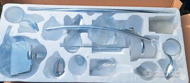 Accessori bagno Morini "Odissea" Kit accessori cromo/vetro satinato 9pz (un piattino portasapone in vetro è rotto) Nuovo in imballo originale