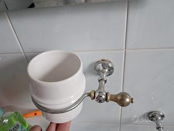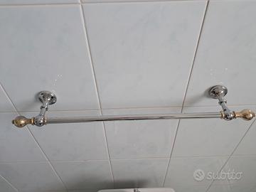 Vendesi n. 6 accessori bagno con cromatura dorata un po logora barra lunga cm.70 barra piccola cm.50 porta sapone porta accessori porta carta igienica sgabello cm.33 x 40 h