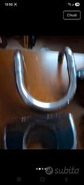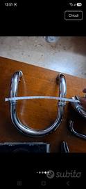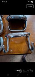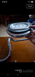 Accessori bagno cromati (1 porta sapone e porta carta igienica, 1 porta scopino, 1 portasalvietta, 1 gancio doppio per accappatoi). Cromati e neri