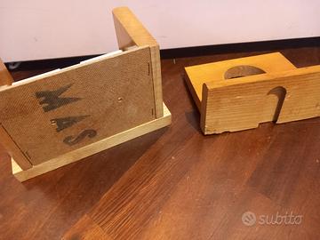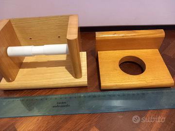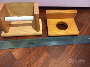 Accessori bagno vintage arredo design anni 80' in legno 2 pezzi porta rotoli porta saponetta nuovi mai usati