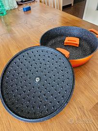 2 pentola stoneline ,nuove veramente belle per una cucina dietetica con i coperti con coperchi gociolatoio per una cottura perfetta e veloce, con manici estraibili in gomma silicone,per poter cucinare anche in forno misure cofondatore cm 29 alta 8, quella ovale cm33 x 25 alta cm 12
