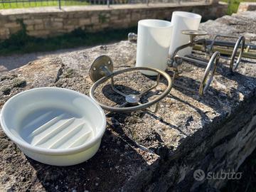 metto inaccessori da bagno ann '20 in ottone che ha perso la nichelatura restaurati e lucidati ottimi per completare un bagno d'epoca- Porta asciugamani, Porta spazzolini e portasapone.