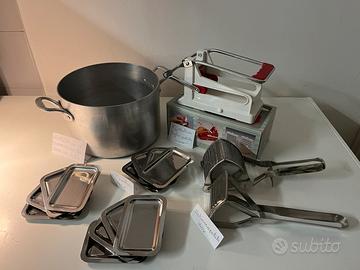 Vendo in blocco come da foto articoli da cucina in acciaio inox e alluminio. Descrizione e misure nelle foto.