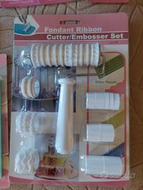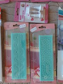 accessori per decorazione torte: nastro cutter rullo 2 stampi in silicone 1 tappeto rigido per venature 8 set di cuoricini