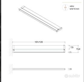 NUOVA ANCORA IMBALLATA, vendo barra portasapone e porta asciugami per pareti Walk In da 120cm. Realizzata in alluminio cromo, èriducibilein lunghezza e, grazie ai gommini regolabili in silicone, risulta compatibile convetri di spessore 10, 8 o 6 mm!