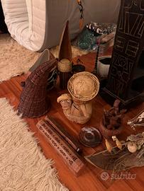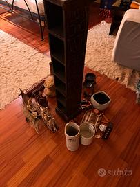 Regalo accessori etnici: porta ogetti intagliato a colonnina, vaso orientale, bruciatore incenso a bacchetta. Da ritirare in loco