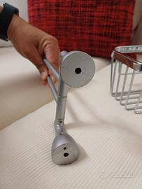 Porta salviette acciaio lucido e satinato, porta asciugamani due bracci in acciaio satinato da muro e porta sapone, shampoo...ad angolo da doccia in acciaio lucido, tutto in ottime condizioni.