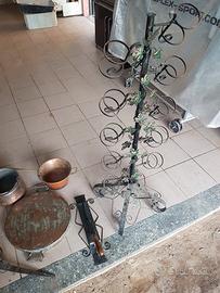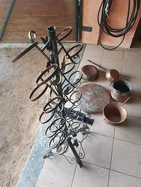 porta bottiglie a colonna cavatappi a parete e pentole da ornamento.