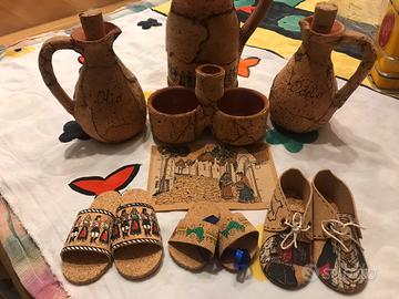 Vendo questi pezzi di vari accessori per la casa ricoperti in sughero della Sardegna, molto decorativi e nello stesso tempo utili... olio e aceto, sale e pepe, brocca vino o acqua in terra cotta e altri pezzi in regalo simboli della Sardegna in sughero. Vendo in blocco, mai usati e tenuti con cura.