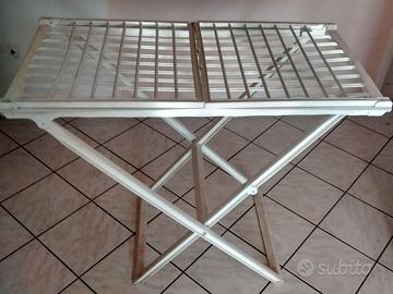 Un stendibiancheria a cavalletto in materiale plastico.