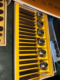 Due det di forchette coltelli e cucchiai con vari coltelli da cucinain acciaio e legno valbruna piu due apendini per cucina in confezione originale mai usati