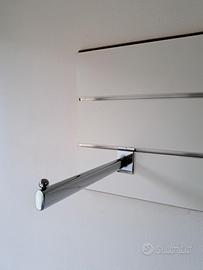 Accessori per pannelli dogati in metallo cromato: Vendita in blocco € 150,00 o a singoli pezzi vedi sotto 2 coppie reggi mensole profondità cm. 30 € 4,00 cadauno 4 appendiabiti ad U misura cm. 110 x 30 € 11,00 cadauno 2 appendiabiti ad U misura cm. 60 x 30 € 9,50 cadauno 8 braccio appendiabiti ovale cm. 35 € 3,00 cadauno 4 braccio appendiabiti sottile cm. 30 € 1,50 cadauno 2 portacappelli € 5,50 cadauno 34 staffe espositori scarpe giallo fluo plastica € 1,70 cadauno 10 espositori prezzi vetrina per formato carta A5 € 2,00 cadauno