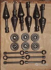 sei puntali con supporto per bastoni per tende in ferro battuto. Modello originale MARBAN, della serie CONO, prodotti da Valenti. Come nuovi e come da foto, sono 6 pezzi completi di puntale, braccio e supporto a muro, per bastoni di diametro 20 - 22.
