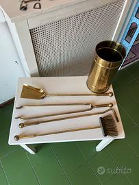 Set vintage di accessori per pulizia e manutenzione camino in ottone. Bellissimo oggetto in condizioni ottime.