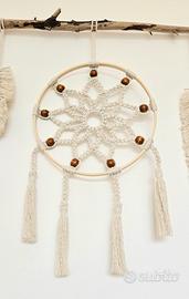 Bellissimo acchiappasogni in stile boho chic, perfetto per aggiungere un tocco di originalità alla tua casa. Realizzato a mano, in cotone naturale, con tecnica macramè. Misura circa cm 72 x 62. Decorazione murale unica nel suo genere.
