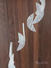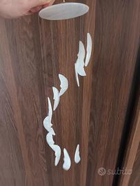Acchiappasogni (dream catcher) di pietra bianca simile all'alabastro. Composta da un disco di 10 cm di diametro e 12 sonagli a forma di mezza luna. Suono ed effetto visivo molto gradevole. Lunghezza 45 cm.