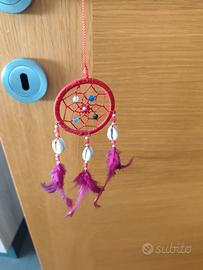 Acchiappasogni rosso, con piume fucsia e decorazioni