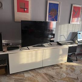 Madia Sheraton in legno laccato bianco, con ante scorrevoli rotanti. Disegnata da Giotto Stoppino e prodotta da Acerbis negli anni 70, raro pezzo color bianco che si adatta ad ogni situazione, patina del tempo, prima edizione originale. (vendita per trasferimento in casa ridotta)