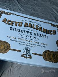 Realizzato su richiesta del Maestro Luciano Pavarotti nel 2006 in occasione di un’asta di beneficienza, questo Cofanetto offre a tutti gli appassionati un percorso degustazione completo della Collezione Storica Giusti: cinque condimenti a base di Aceti Balsamici di Modena Igp di diverse ricette e invecchiamenti ognuno caratterizzate da sentori e profumi differenti.