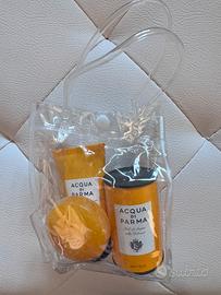 Acqua di Parma minisize mignon con custodia Composta da: Sali da bagno alla colonia 50g Gel bagno e doccia 40 ml Saponetta 50g