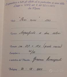 Acquaforte a due colori di Giovanni Romagnoli, "Pesci rossi" 1973.