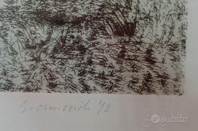 Vendo acquaforte di Giovanni Omiccioli (1901-1975; esponente della Scuola Romana, definito "il pittore di Via Margutta"; amico di Mafai, Guttuso e Afro). Anni '60-'70, tiratura 21/100, cornice originale, misure 63x47 cm esclusa cornice. Provincia di Ascoli Piceno. Tel. 3492142736.
