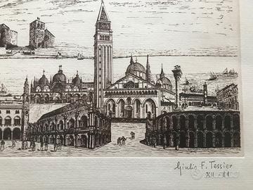 Acquaforte originale IL VENETO VISTO DA LUGANO di Giulio Tessier. Incisione a mano su una lastra metallica. Misure 50x70. Ritiro a Milano zona città studi.