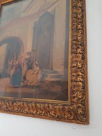 Bel quadro dell'800 in acquarello, con scena paesana ottocentesca, con firma di Vincenzo Montefusco (Cava De' Tirreni 1852 - Roma 1912). Con cornice dell'epoca.