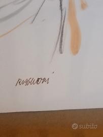 Acquarello su carta con cornice con figura di donna del pittore A. Raggetti.
