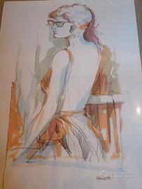 Acquarello su carta incorniciato con figura di donna del pittore A. Raggetti.
