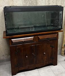 Vendo due acquari usati (200L e 15L) con moltissimi accessori. Ideali per principianti, o come vasche per riproduzione o quarantena o per tenere tartarughe d'acqua. Insieme mobile arte povera in legno massello, ideale per sostenere acquario 200L